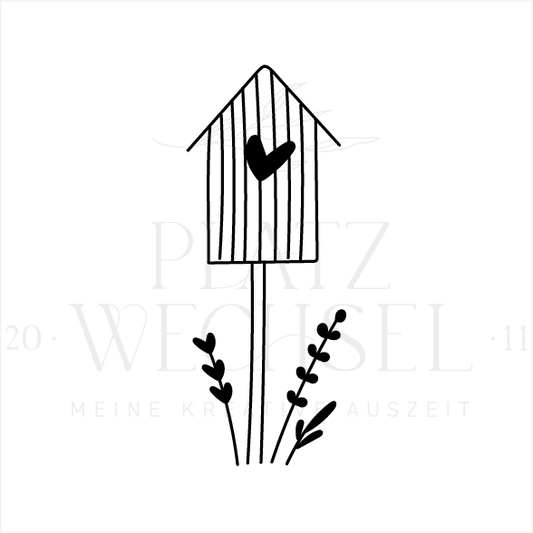 Holzstempel | Vogelhaus mit Blumen | 3 x 6 cm