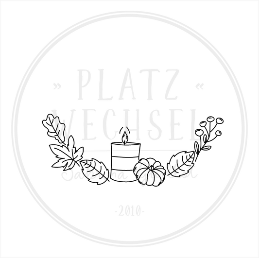 Holzstempel | "Halbkranz - Herbstlaub mit Kürbis & Kerze" | 3 x 6 cm