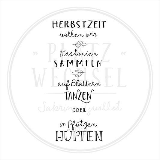Holzstempel | Herbstverliebt - lass uns in Pfützen hüpfen | 5 x 5 cm