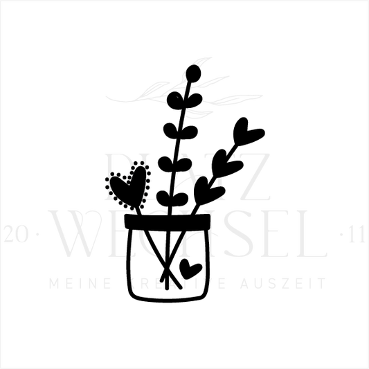 Holzstempel | Blumentopf mit Fantasieblumen | 3 x 6 cm