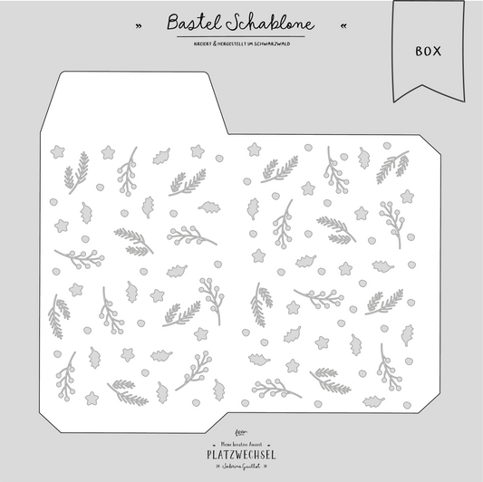 Unsere Winter- und Weihnachtsschablonen bringen festlichen Bastelzauber auf alles, was nicht bei drei im Geschenkpapier ist. Gestalte liebevoll Karten, Verpackungen, Anhänger und Deko mit Sternen, Tannen und zarten Zweigen, die aussehen, als wären sie direkt aus einem hyggeligen Wintermärchen gefallen.