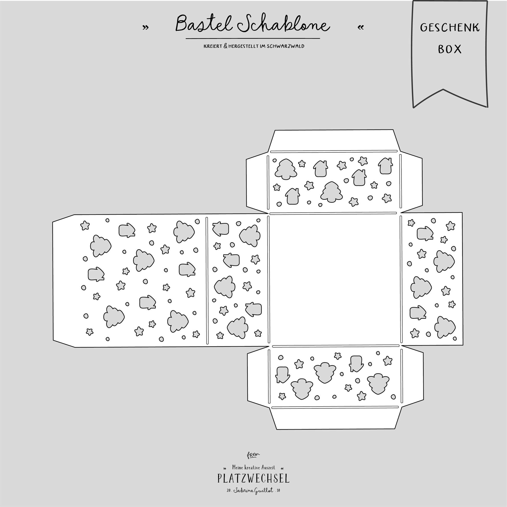 Quadratisch, praktisch. Die Geschenkschachtel ist die unauffällige Heldin unter den Verpackungen. Mit der Schablone zauberst du blitzschnell kleine Boxen, Motive einfach mit Paste, Farbe, Stempelfarbe oder Fineliner übertragen.