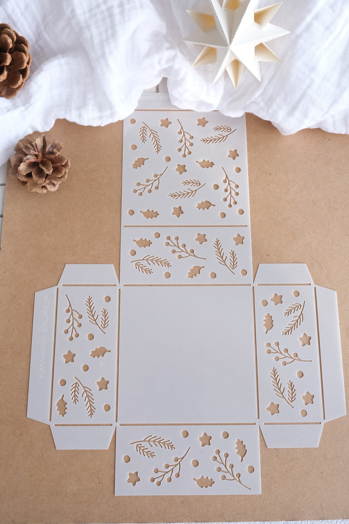 Quadratisch, praktisch. Die Geschenkschachtel ist die unauffällige Heldin unter den Verpackungen. Mit der Schablone zauberst du blitzschnell kleine Boxen, Motive einfach mit Paste, Farbe, Stempelfarbe oder Fineliner übertragen.