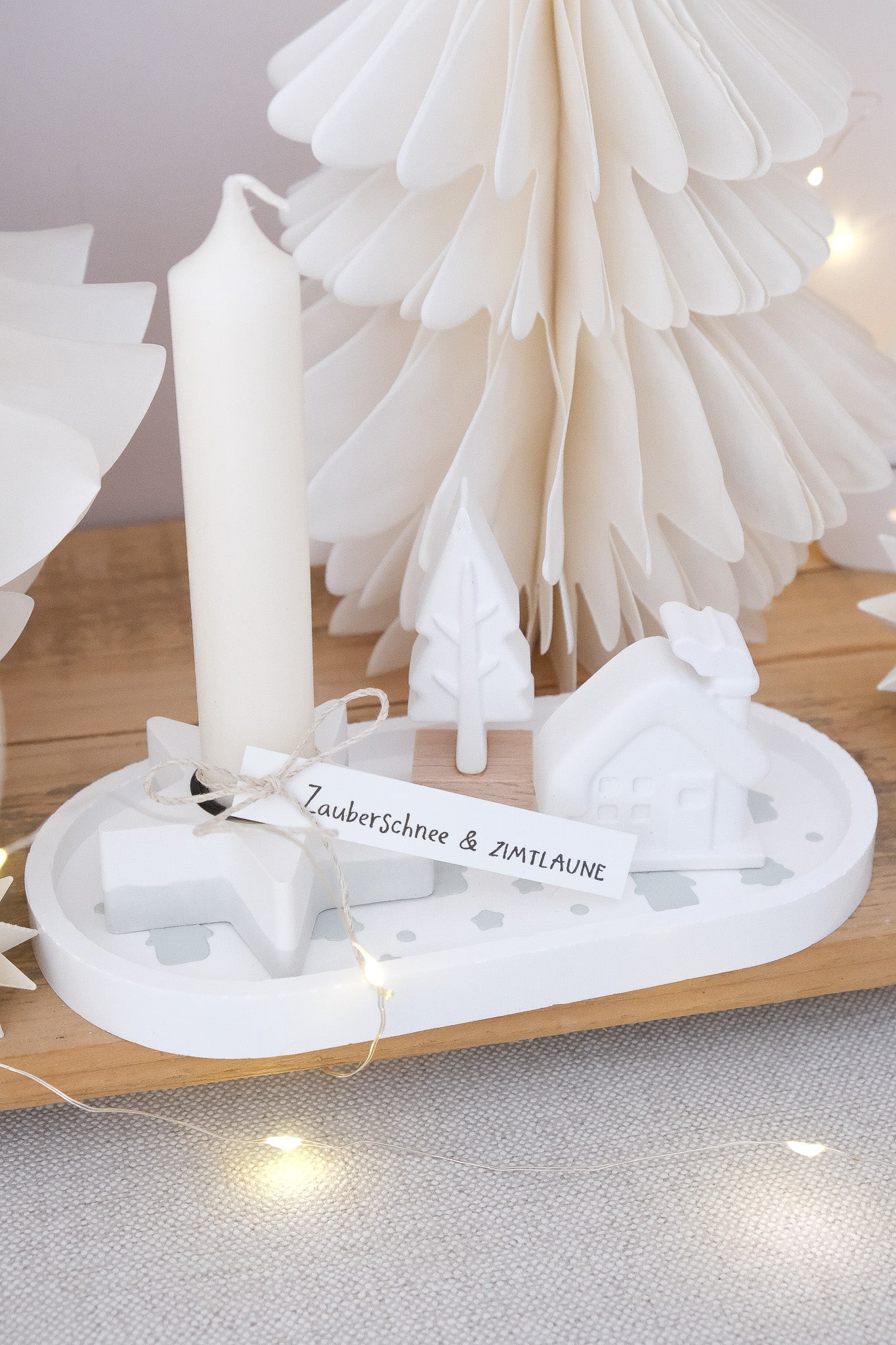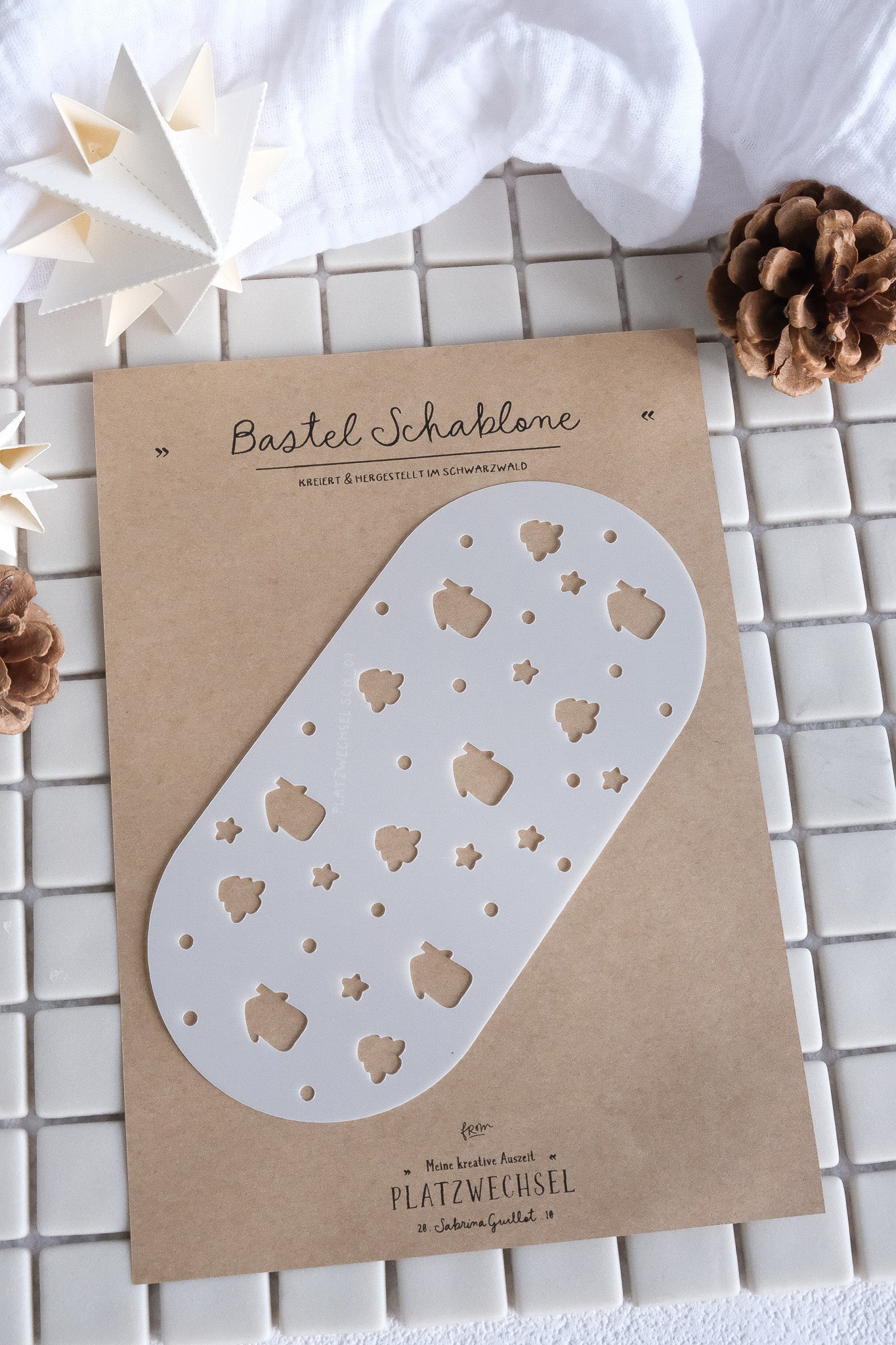 Ein kleines Winterdorf für deine Kreativprojekte: Die Häuser-Schablone bringt Schneeflocken, Tannen und Häuschen aufs Tablett. Funktioniert wunderbar mit Beton- oder Raysin-Gießlingen und sorgt für nordischen Charme im Miniaturformat.