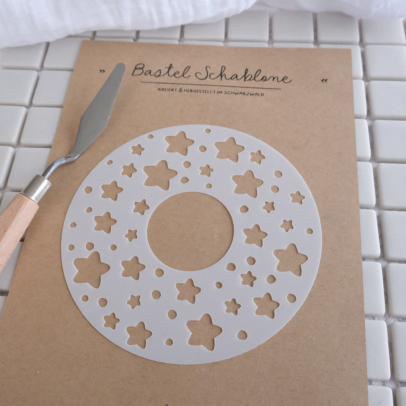 MERKMAL: Die Schablone hat eine Runde Form so kann sie zb. in gegossene Teller gelegt werden. Das Motiv überträgst du mit Hilfe von einer kleinen Farbspachtel und Strukturpaste.