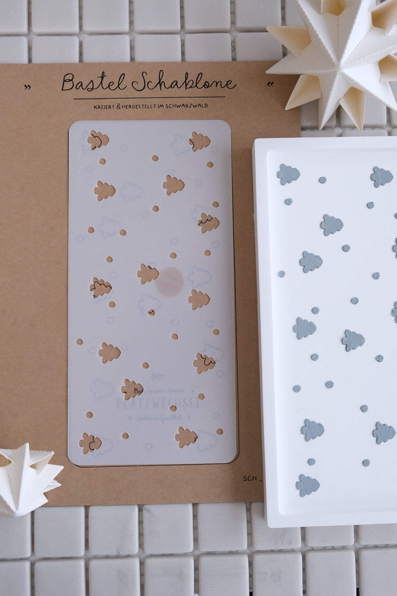 TIPP: Kleb eine kleine Lasche aus Klebeband an die Schablone. So kann sie nach dem auftragen der Paste einfacher abgezogen werden.