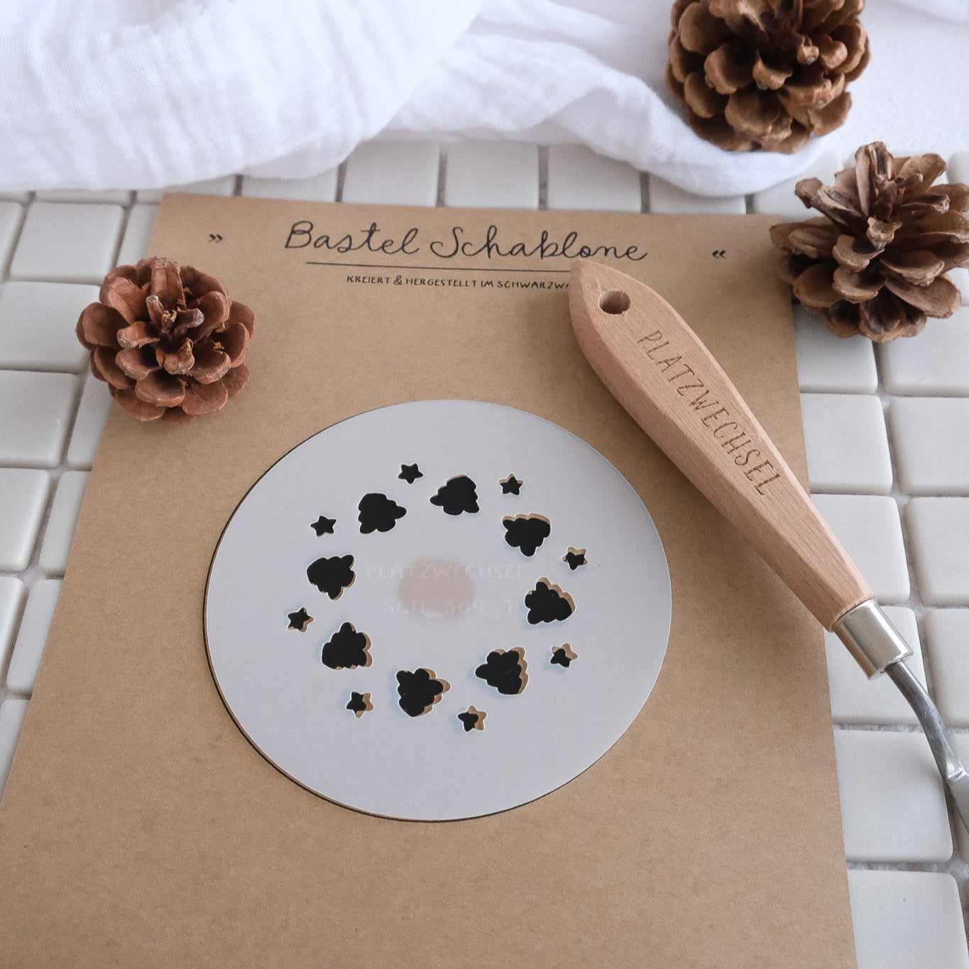 MERKMAL: Die Schablone hat eine runde Form. So kann sie zb. in gegossene Teller mit einem Durchmesser von 24cm oder 32cm gelegt werden. Das Motiv überträgst du mit Hilfe von einer kleinen Farbspachtel und Strukturpaste.