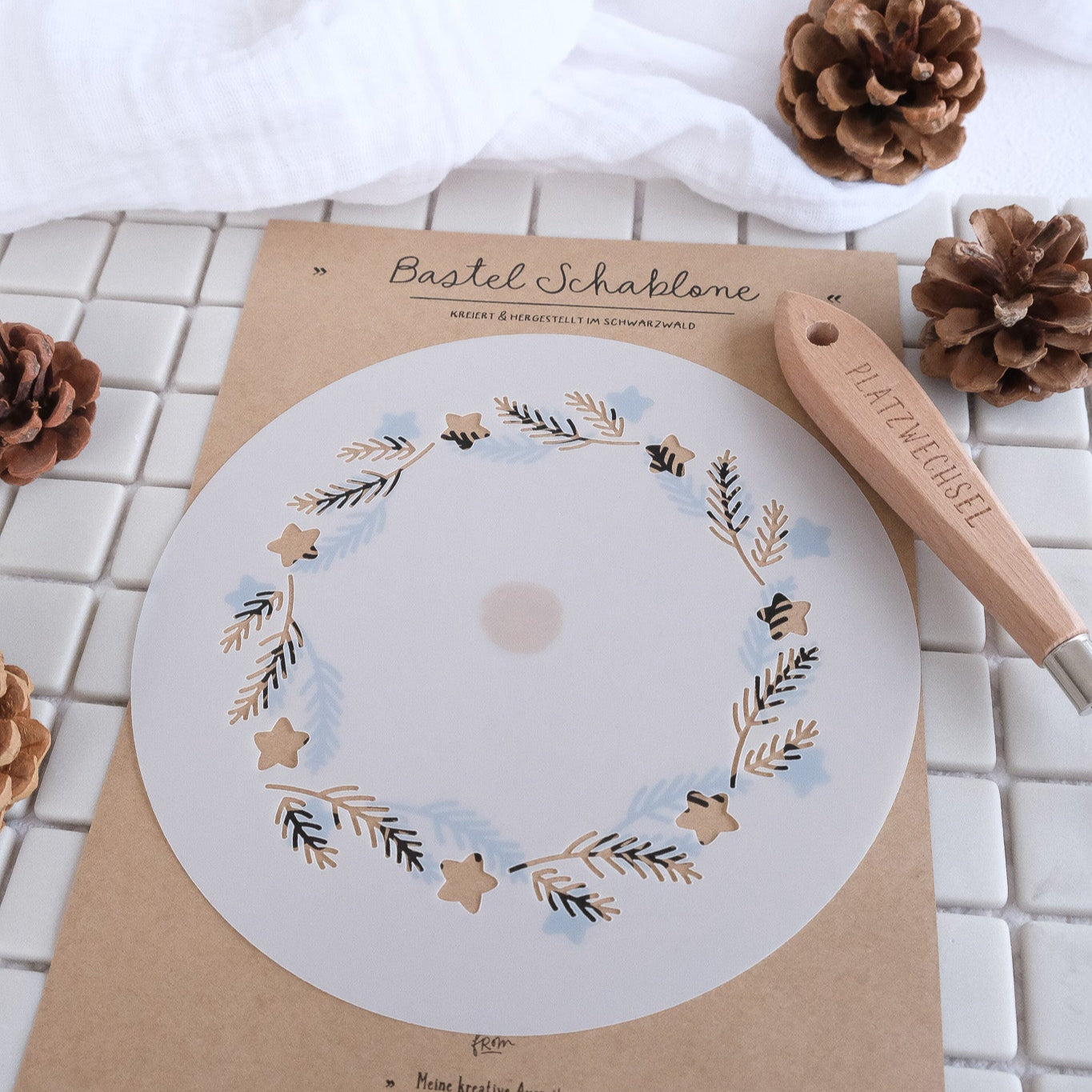 MERKMAL: Die Schablone hat eine Runde Form so kann sie zb. in gegossene Teller gelegt werden. Das Motiv überträgst du mit Hilfe von einer kleinen Farbspachtel und Strukturpaste.
