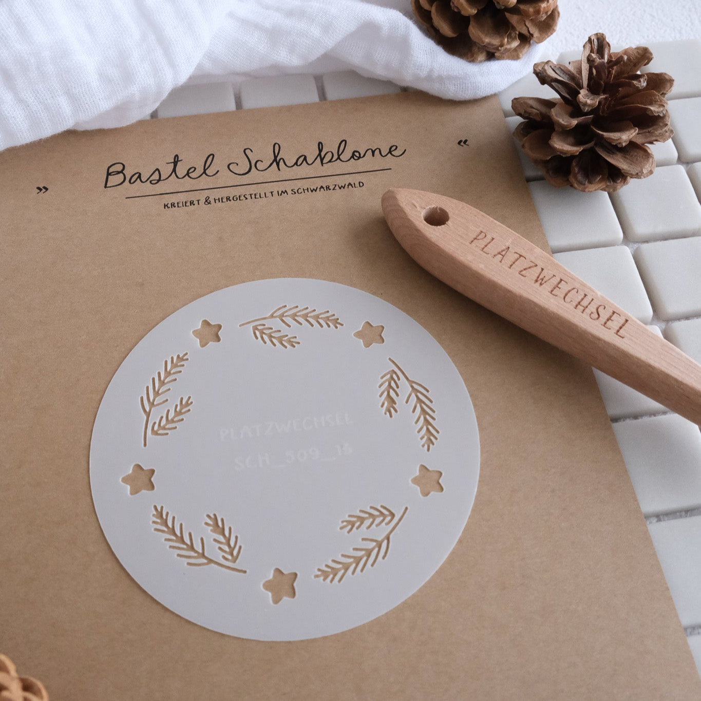 MERKMAL: Die Schablone hat eine runde Form. So kann sie zb. in gegossene Teller mit einem Durchmesser von 24cm oder 32cm gelegt werden. Das Motiv überträgst du mit Hilfe von einer kleinen Farbspachtel und Strukturpaste.
