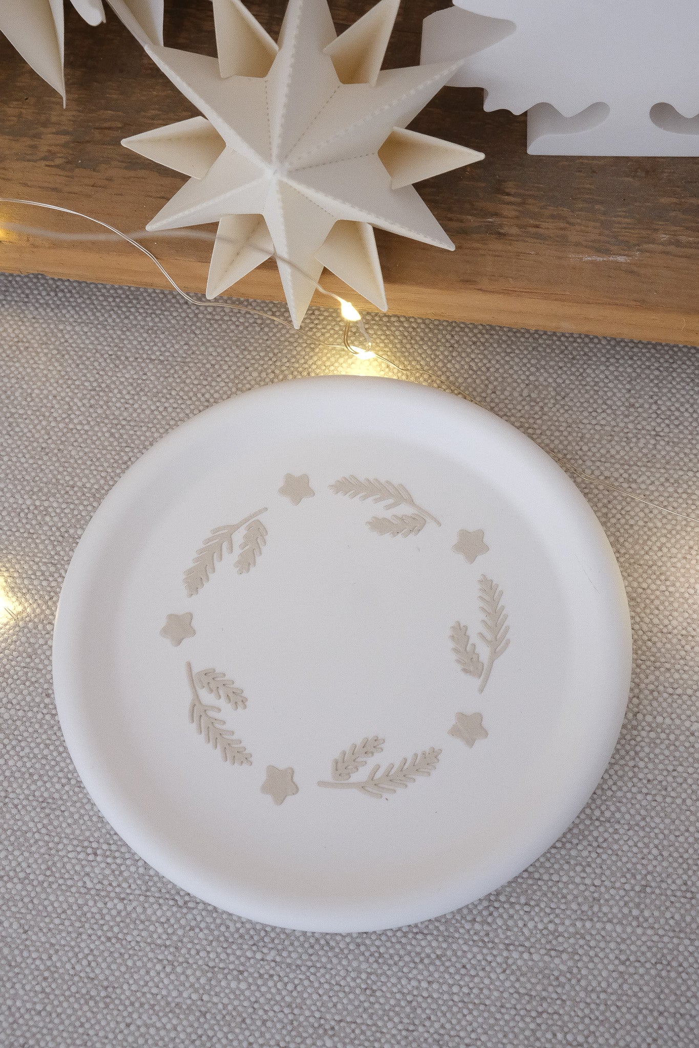 TIPP: Kleb bei tiefen Projekten wie zb. Tellern eine kleine Lasche aus Klebeband an die Schablone. So kann sie nach auftragen der Paste einfacher entfernt werden.