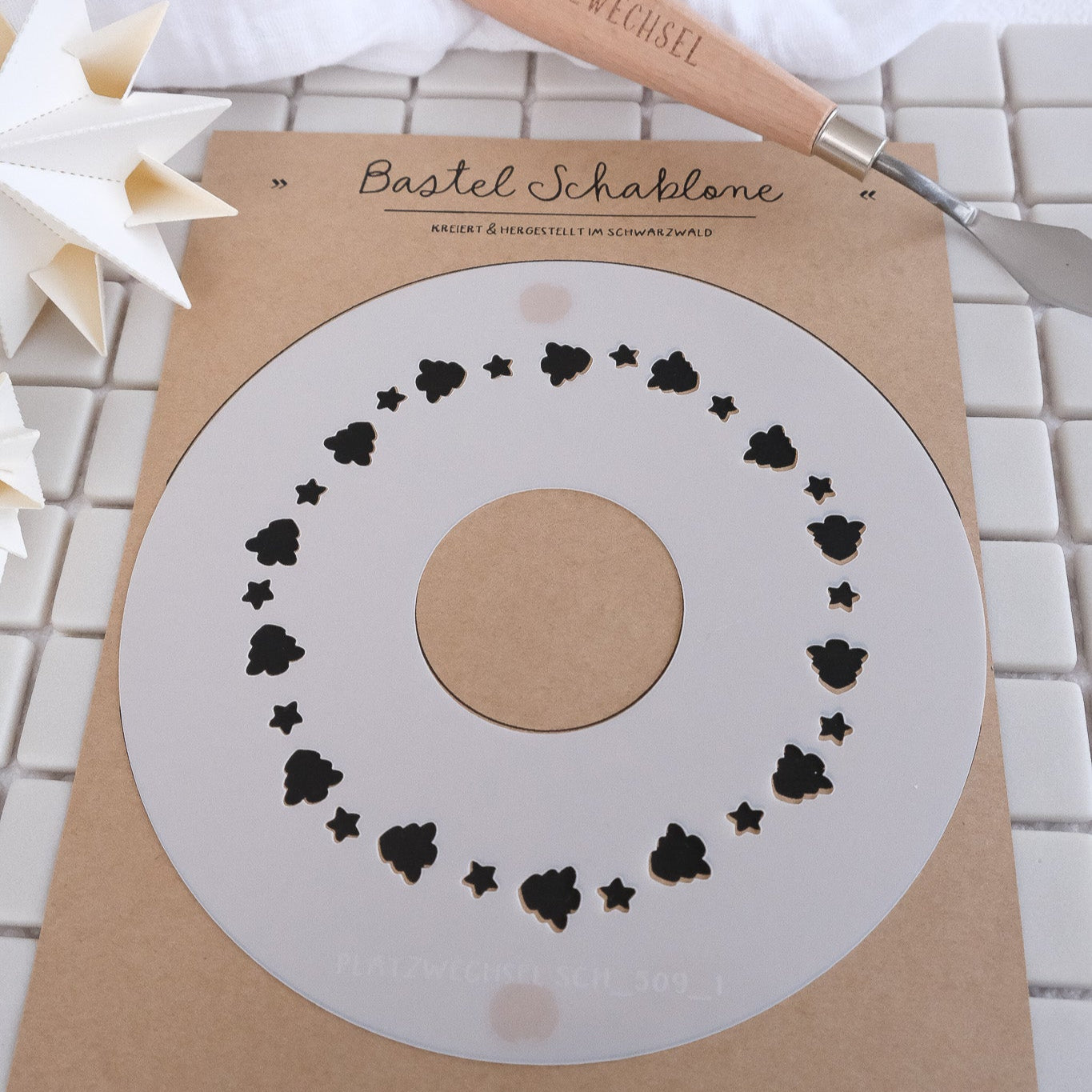 MERKMAL: Die Schablone hat eine Runde Form so kann sie zb. in gegossene Teller gelegt werden. Das Motiv überträgst du mit Hilfe von einer kleinen Farbspachtel und Strukturpaste.