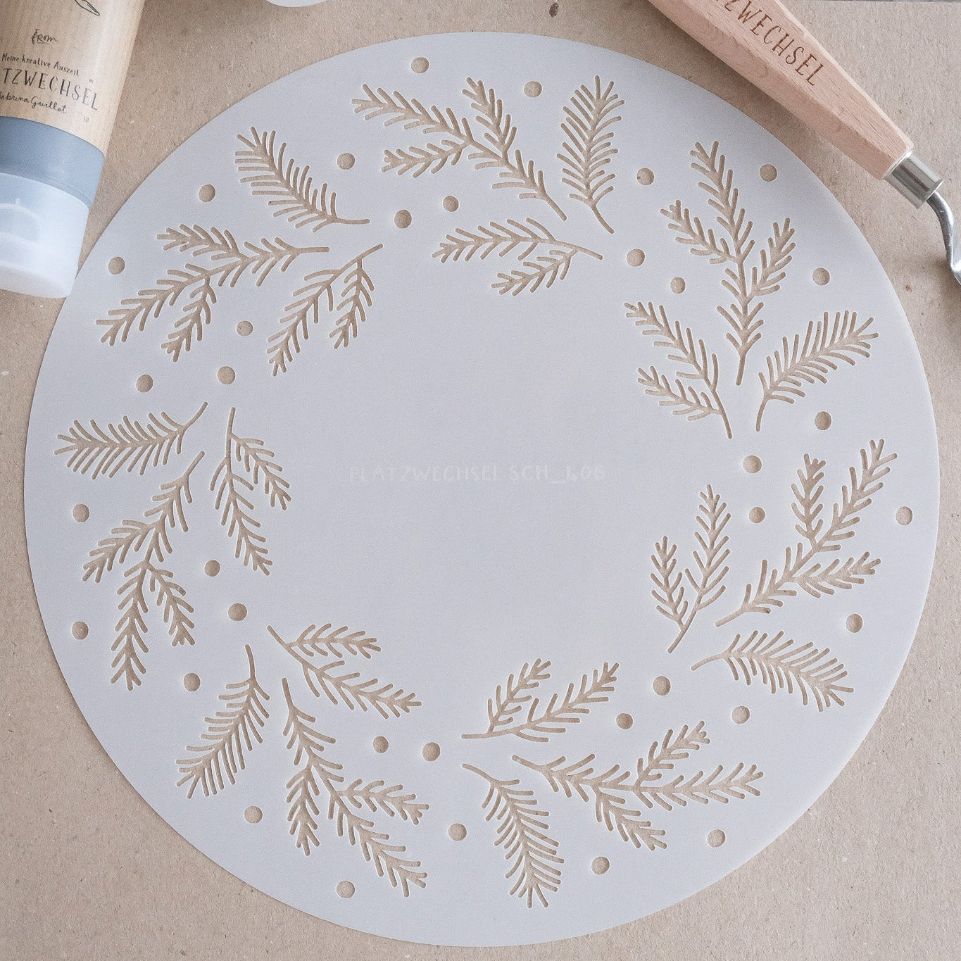 MERKMAL: Die Schablone hat eine Runde Form so kann sie zb. in gegossene Teller gelegt werden. Das Motiv überträgst du mit Hilfe von einer kleinen Farbspachtel und Strukturpaste.