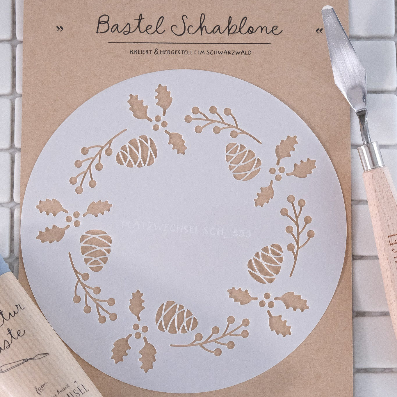 MERKMAL: Die Schablone hat eine Runde Form so kann sie zb. in gegossene Teller gelegt werden. Das Motiv überträgst du mit Hilfe von einer kleinen Farbspachtel und Strukturpaste.