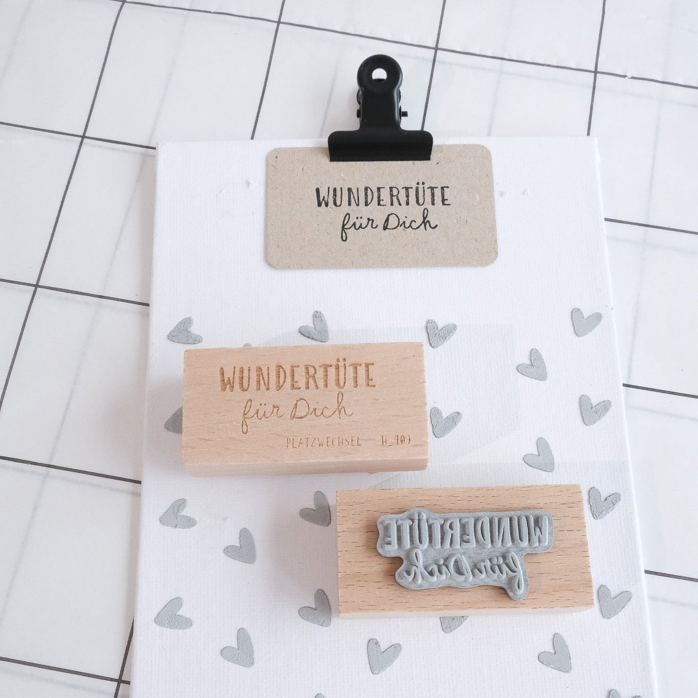 HINWEIS: Der Stempelgummi wird von Hand montiert und kann unter Umständen nicht in Waage auf dem Holz montiert sein. Dann bitte eine Stempelhilfe wie zb. einen Winkel verwenden um das Motiv gerade auf Papier zu stempeln.